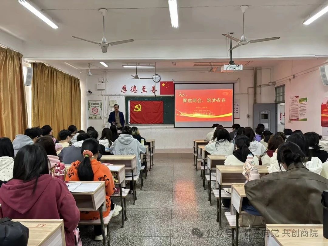 为了强化理论学习,进一步理解两会精神,坚定我院学生党员及入党积极分子的理想信念与党性意识。2025年3月18日12:10,商学院学生党支部在跬步楼1306教室开展“聚焦两会,筑梦青春”主题党课。本次党课由商学院党委书记刘根林主讲,商学院部分学生党员及入党积极分子参与。