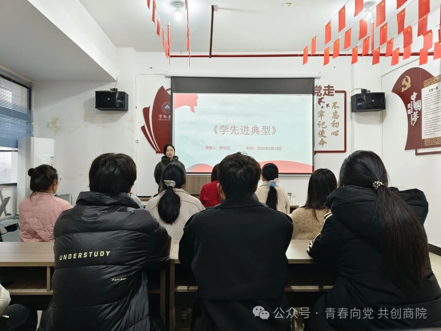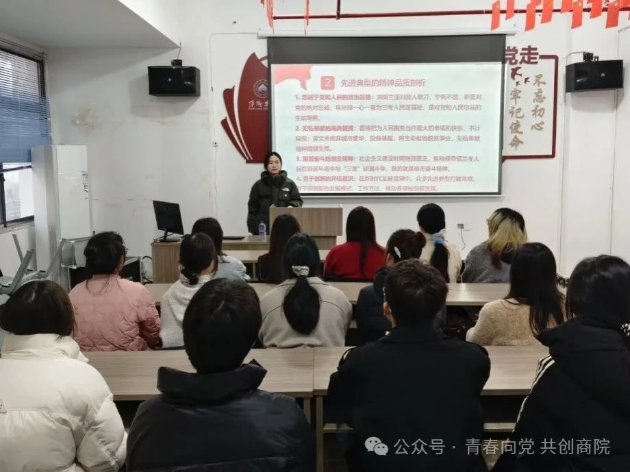 为引导我院入党积极分子汲取榜样力量,增强党性修养,提升其的责任感与使命感,激励其在工作和生活中发挥先锋模范作用。2025年3月13日16:20,商学院学生党支部在红管家活动室开展“学先进典型”红管家微党课活动。本次微党课由商学院学生第二党支部书记罗可欣主讲,商学院部分入党积极分子参与。