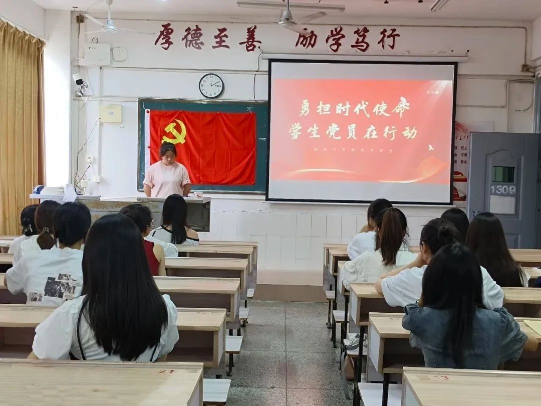 为全面提升学生党员的思想觉悟、纪律意识和实践能力,使其在新时代中勇担使命,发挥先锋模范作用。2025年6月12日12:10,商学院学生党支部在跬步楼1309教室开展“勇担时代使命,学生党员在行动”党员宣讲活动。本次宣讲活动由学生党员韩静主讲,商学院部分入党积极分子参与。