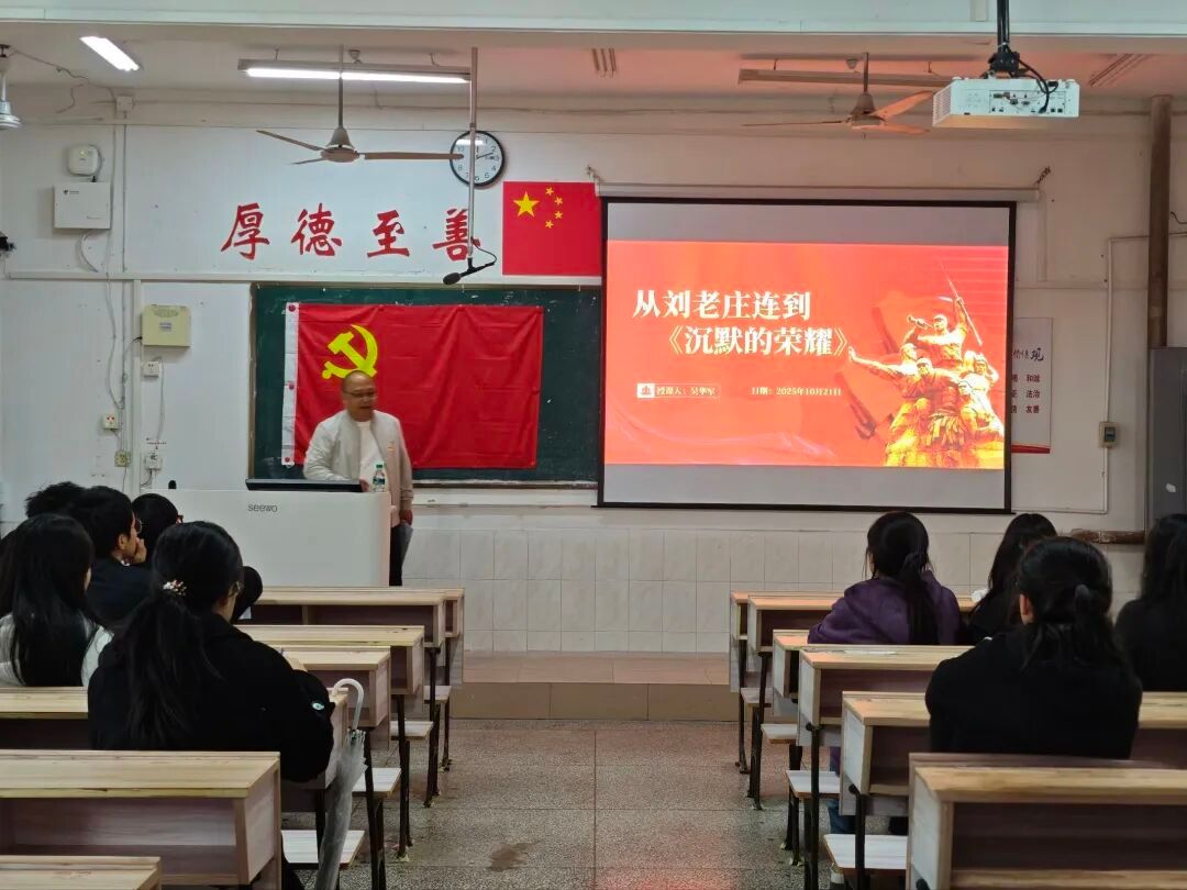 为追溯英雄足迹,品悟隐蔽战线上的忠诚信仰,强化我院学生党员及入党积极分子对“舍小我为大我”精神内核的理解与认同。2025年10月21日12:10,商学院学生党支部在跬步楼1306教室开展“从刘老庄连到《沉默的荣耀》”主题党课。本次党课由商学院党委副书记吴华军主讲,商学院部分学生党员及入党积极分子参加。