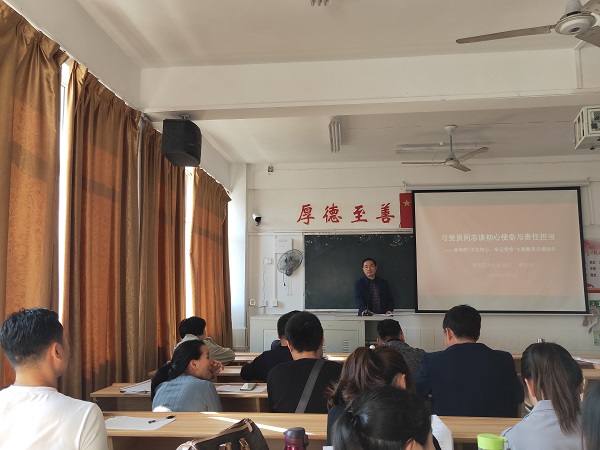 为深入学习贯彻落实习近平新时代中国特色社会主义思想以及习近平总书记关于教育工作的重要论述,2019年11月5日下午4时,商学院召开“不忘初心、牢记使命”主题教育党课报告工作会议,本次党课由商学院党总支书记韩芳文讲授,商学院全体教师党员参加。