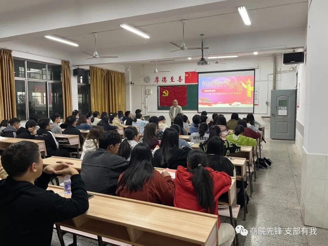 “让信仰之火熊熊不息,让红色基因融入血脉,让红色精神激发力量。”习近平总书记的这句话使人感触极大。为了让我院学生党员及入党积极分子感悟红色精神,培养红色基因,坚定红色信仰,2021年10月21日19:10,商学院学生党支部在跬步楼1306教室开展了“抗美援朝,保家卫国”主题党课教育活动。此次党课的主讲人为商学院党委副书记吴华军,参与此次党课的人员有商学院部分在校学生党员及入党积极分子。