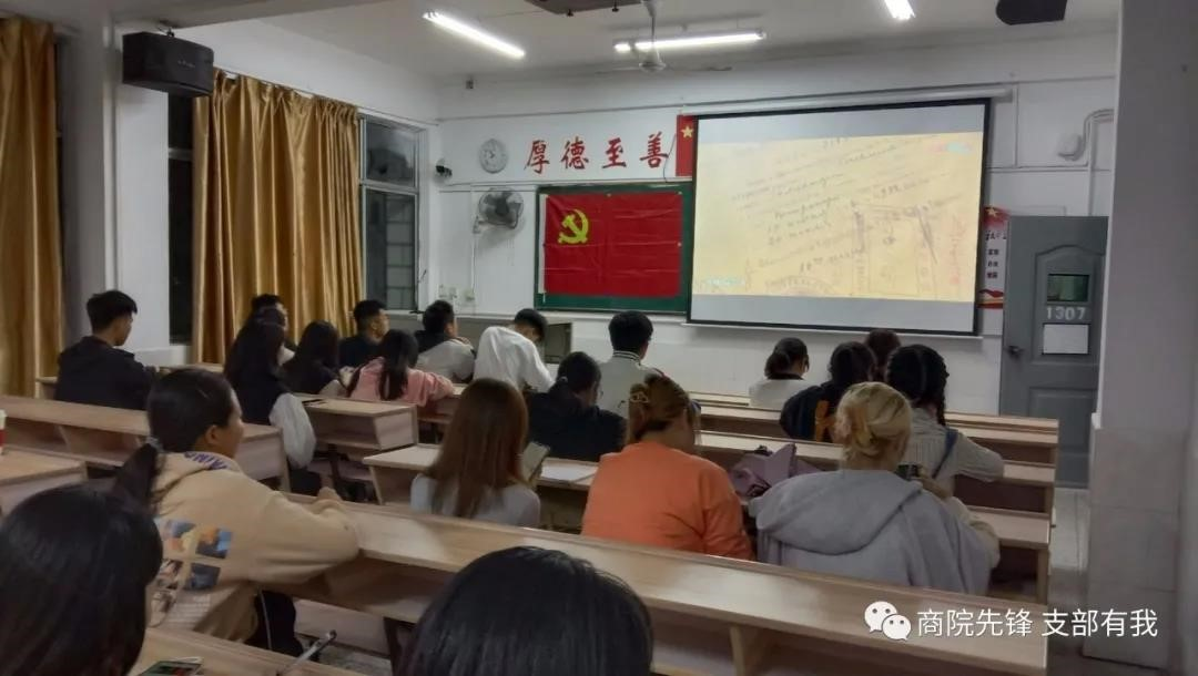 为加强党史教育,帮助我院学生深入了解党的历史保密工作,增强保密安全防范意识,提高同学们保密工作的自觉性和主动性。2021年10月13日晚上7:30,商学院学生党支部在跬步楼1307组织观看《胜利之盾》,部分入党积极分子参加此次活动。