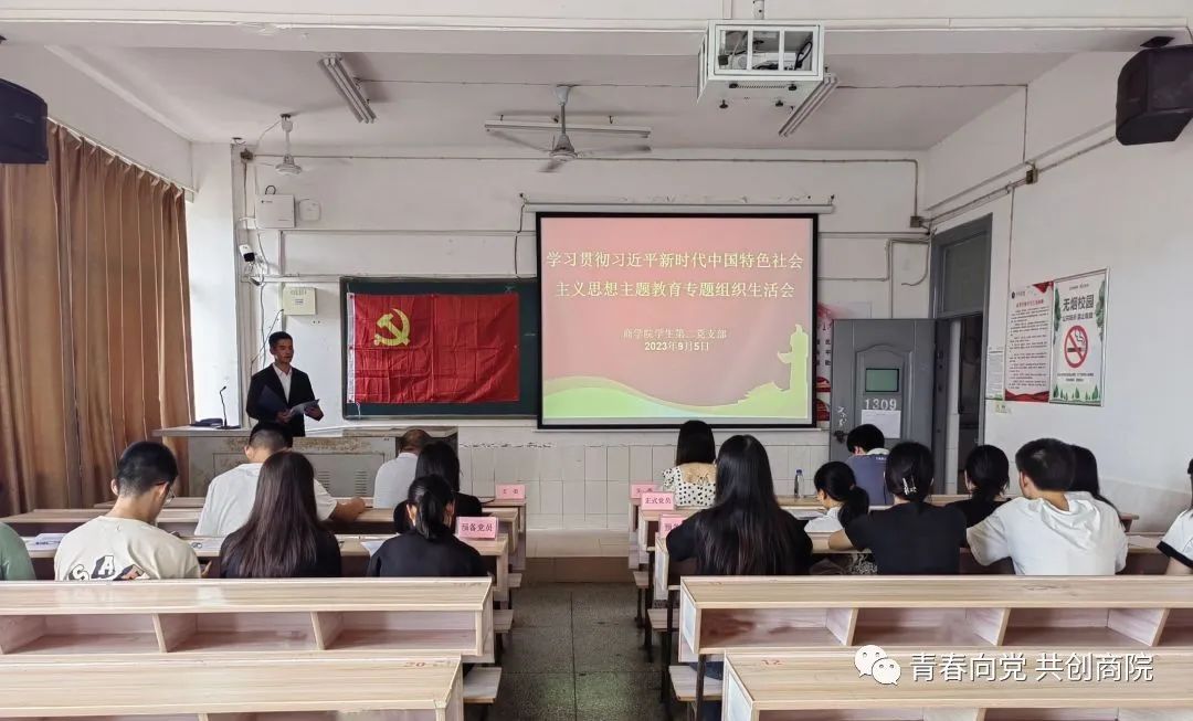 深入学习领悟习近平总书记“以学铸魂、以学增智、以学正风、以学促干”重要论述的丰富内涵和实践要求,推动主题教育走深走实,坚持不懈贯彻习近平新时代中国特色社会主义思想。2023年9月5日中午12时,商学院学生第二党支部于跬步楼1309教室召开了学习贯彻习近平新时代中国特色社会主义思想主题教育专题组织生活会。本次会议由郭宏主持,商学院学生第二党支部全体支委同志和全体学生党员参与本次会议。