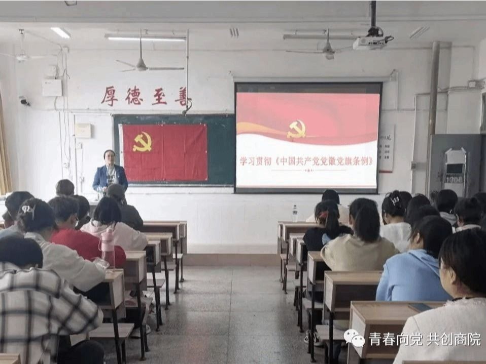为增强我院学生党员及入党积极分子的凝聚力、战斗力,推动其进一步了解党内党规,强化党性观念,提高思想意识。2023年11月8日12:10,商学院学生党支部在跬步楼1306教室组织开展“入党积极分子发展事项及六项发展清单”主题党课。本次学生党员及入党积极分子学习会由商学院学生第一党支部书记易晶晶主讲,商学院部分学生党员及入党积极分子参与。