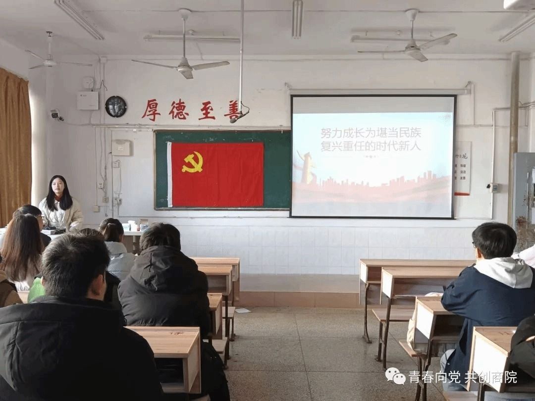 为深入贯彻习近平总书记在中国人民大学考察时的重要讲话精神,引导我院学生党员及入党积极分子立大志、明大德、成大才、担大任,成为堪当民族复兴重任的时代新人。2023年12月25日12:10,商学院学生党支部在跬步楼1306教室开展“努力成长为堪当民族复兴重任的时代新人”主题党课活动。本次党课由商学院学生第一党支部纪检委员邓旎涵主讲,商学院部分学生党员及入党积极分子参与。