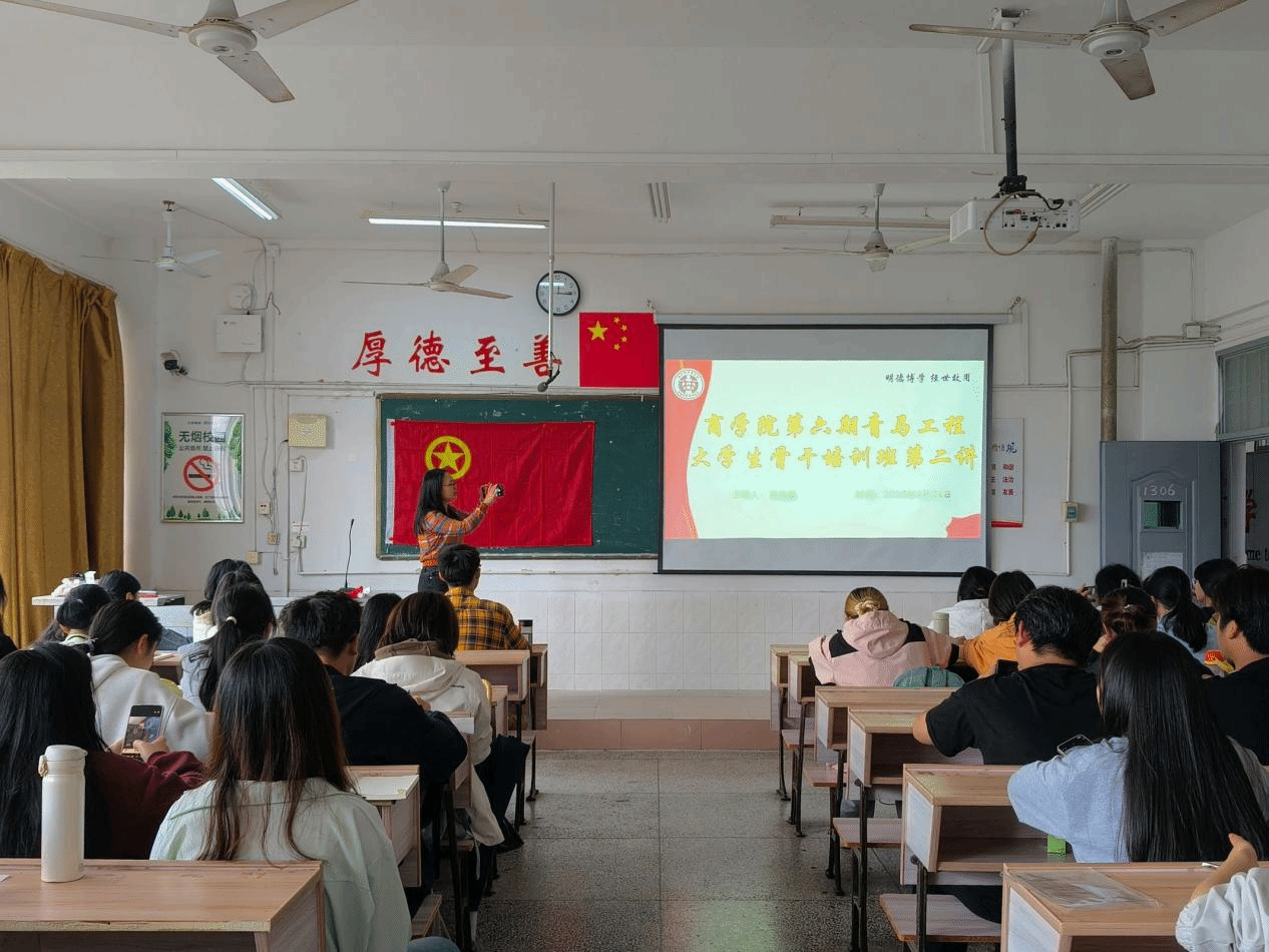 为增强学生干部思想政治水平、强化工作能力,系统推进其创新思维与实践技能的协同发展。商学院第六期“青马工程”大学生骨干培训班开班第二讲于2025年4月24 日12:10在跬步楼1306室举行,由商学院团委书记易晶晶主讲。