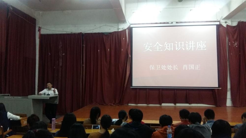 为加强我院学生自我保护意识,营造和谐平安的校园环境。商学院特于4月6日晚7点在跬步楼1115召开了安全知识讲座。本次讲座由校保卫处处长肖国正老师主讲,参加本次讲座的还有党总支副书记尹金老师以及商学院全体学生。