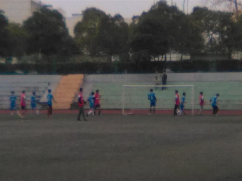 双方队员早早的来到田径场,都在进行紧张的热身训练以此让自己在比赛时能够出色发挥。4点30随着裁判一声哨响,比赛开始,双方队员迅速进入状态,打的十分激烈,配合默契的传球,精准的拦截,迅捷的带球,双方都多次打门,特别是艺术系的0号球员多次对商学院的球门造成威胁,但都被商学院的后卫以及守门员化解,最后商学院凭借一个角球打门成功,把比分锁定1:0,随后的时间双方虽然打的十分激烈,都未进球,随着裁判的一声结束哨响,比赛结束。