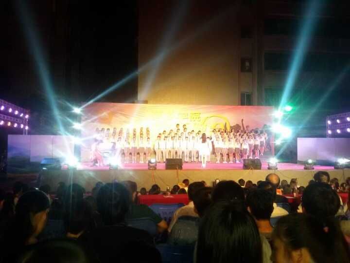 此次晚会分为三个篇章,分别是《红色记忆》,《缤纷校园》,《超越梦想》,不仅有学长,学姐带来的节目还有15级小鲜肉带来的充满激情的歌曲。首先,晚会在舞蹈《映山红》中拉开了序幕,耀眼的红色舞动了全场,为晚会营造了热烈的气氛,舞蹈加二胡演绎的《和平鸽》,夺人眼目;小鲜肉带来的《国际歌》更是为晚会增加了亮点,由体育学院带来的活力四射的啦啦操和和街舞,使全场的气氛达到了高潮,引起了观众的热烈掌声。最后,晚会在热情洋溢的歌舞《中国梦》中完美落幕。