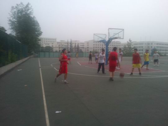 虽然天气炎热,但师生们都是激情满怀:随着激烈的比赛,场下不时传出“老师加油”、“新生加油”的口号此起彼伏。上半场结束时,教师队比分稍少于学生队。
