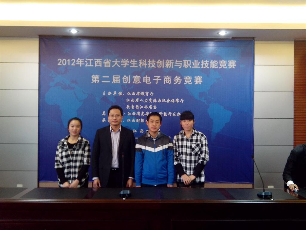 我校首次组队参加江西省大学生科技创新与职业技能竞赛创意电子商务赛,经过全省初赛、总决赛,最终彭新平老师、易海峰老师指导的团队荣获一等奖(全省仅5个团队获得一等奖)、由李芬娟老师、朱艳清老师指导的团队荣获三等奖。