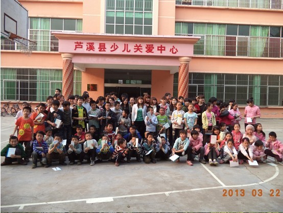2013年3月23日星期五下午,经管系12报关班与12电商班一起到芦溪孤儿院看望那里的小朋友。同学们为小朋友们准备了书籍,铅笔,中性笔和笔记本等慰问品。同学们在下午3点半之前赶到孤儿院,在等待小朋友们放学的同时,同学们参观了孩子们的寝室和图书室,虽然寝室里的物品不多,但是寝室干净整齐。