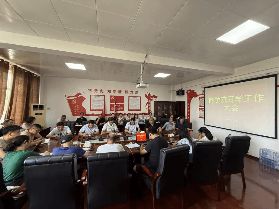 2025年9月1日,商学院于学院会议室召开2025-2026学年秋季学期开学工作大会。会议旨在全面部署新学期各项工作,确保开学阶段平稳有序,推动学院事业发展迈向新台阶。院长罗小燕主持会议并首先发表讲话,书记刘根林、副书记吴华军、副院长雷朝阳及全体教职工参会。