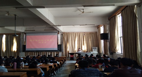 为有效防止校园交通安全事故的发生,保障学生的人身安全。2018年3月15日中午,商学院在跬步楼1101教室召开校园文明出行动员会。此次动员会出席的有商学院党总支副书记尹金书记、团总支书记朱艳清老师、辅导员易晶晶老师、、辅导员杨柳老师、辅导员赖金文老师以及商学院大一大二各班班委。        本次动员会由商学院学生会主席助理彭铖来主持,在动员会过程中,尹金书记解释了关于校园禁止骑电动车和摩托车的原因是校园内人流量过大、并且很多同学无证驾驶导致危险系数的增加,从而诱发交通事故,书记详细的说明了校内驾驶摩托车,电动车给在校学生带来的危害性和事件的严重性。最后,尹金书记做出了以下几点要求:1、严令禁止在校学生驾驶摩托车、电动车;2、时刻注意自己的人身安全,不要存在侥幸心理。