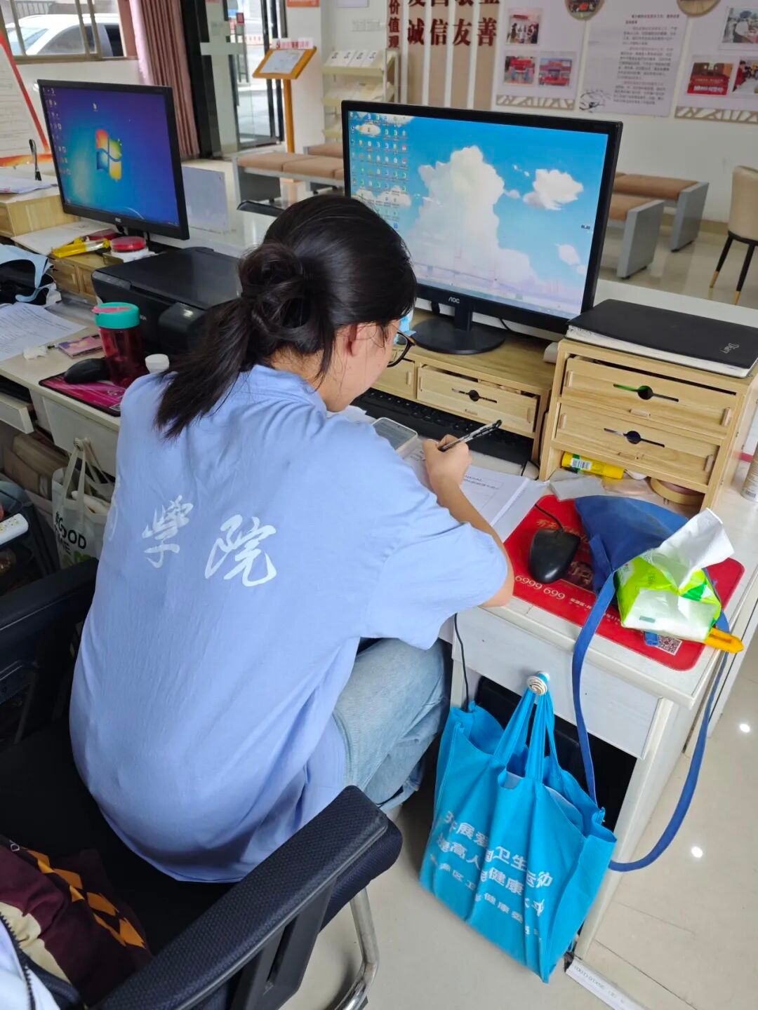 暑假在车上林场的社会实践让她收获颇丰。她们的首要任务是给村民发放防火、防电、防溺水的安全传单。起初她有些紧张,但当看到他们认真阅读传单、主动询问细节时,她逐渐放开了。通过一遍遍讲解,村民们的安全意识明显提高,不少人还主动和她们分享家里的安全隐患,这让她感受到了工作的意义。除了宣传,她们还帮忙清理社区环境。烈日下清扫垃圾、整理杂物虽然辛苦,但看到街道变得干净整洁,大家露出满意的笑容,所有疲惫都烟消云散了。她们在敬老院和老人们一起聊天,听他们讲过去的故事,温馨又治愈。她们用简单易懂的语言给老人们讲解了夏季防暑、日常用药等健康知识,看着他们认真的样子,她真切体会到被需要的快乐。