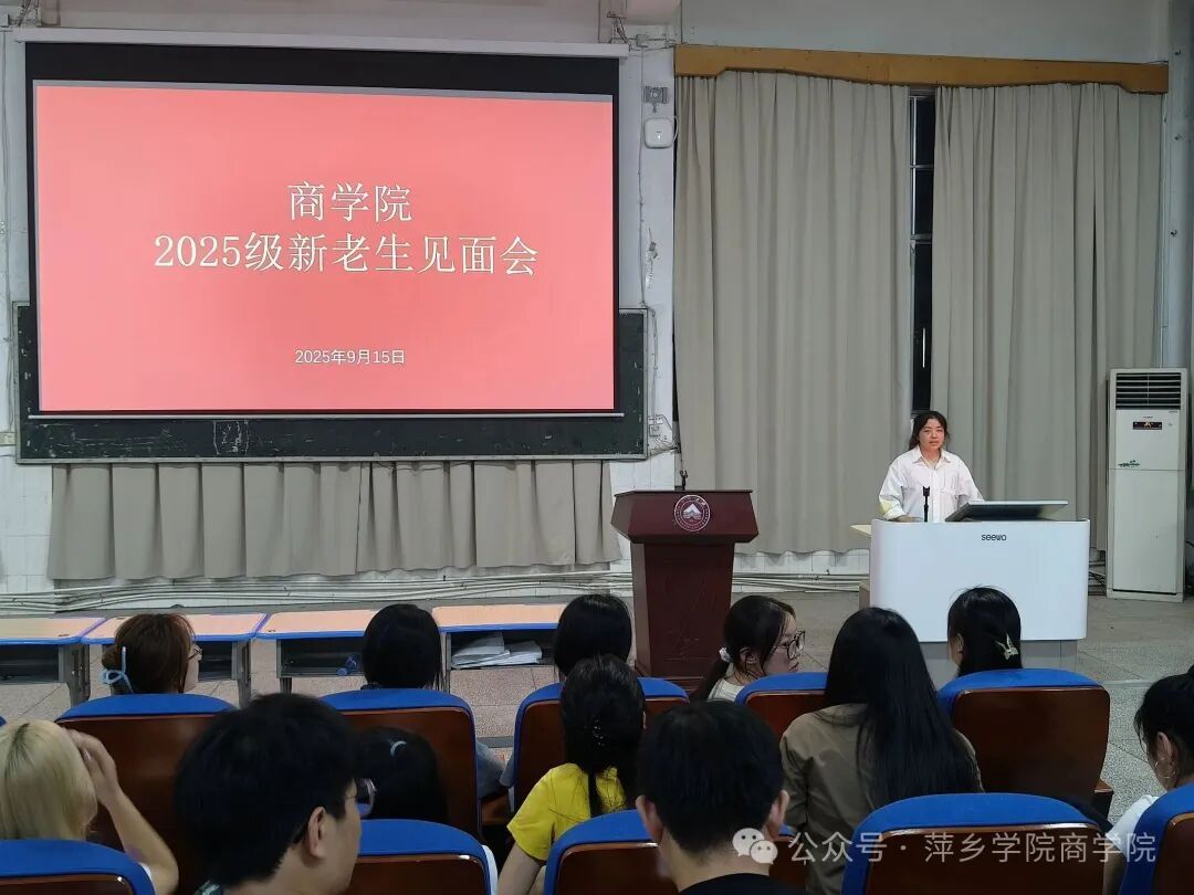 为助力2025级新生快速适应大学环境,深入了解商学院的学科特色与育人理念,明确专业学习方向与未来发展路径,让新生在融入集体的过程中感受到学院的关怀与温暖,2025年9月15-16日18:00,萍乡学院商学院在跬步楼1101教室成功举办新老生见面交流会。