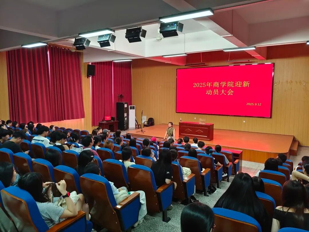 2025年9月12日12:10,商学院于跬步楼1115室召开迎新动员大会,旨在确保即将到来的迎新工作安全、有序、高效开展。商学院团委书记易晶晶及商学院学生会全体成员参加会议,共同为迎接新生做好充分准备。