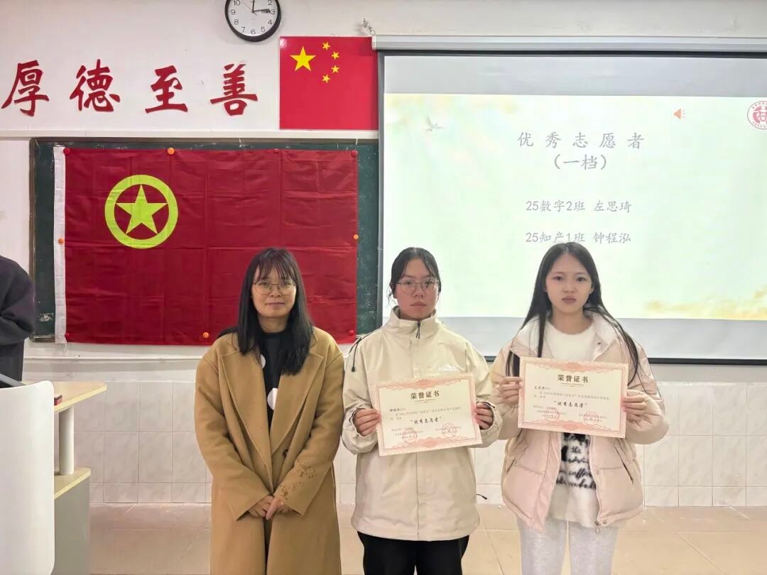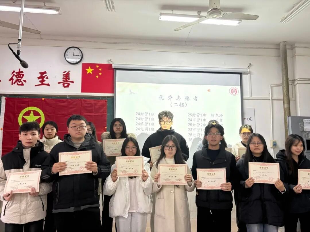 优秀志愿者(二等奖):24财务管理1班:温紫轩、许欣欣、24旅游管理与服务教育1班:林东景、24电子商务1班:余才华、25数字经济2班:段佳、25市场营销1班:成丽容、 23财务管理1班:彭歆迪、 25财务管理1班:钟克涛、 24市场营销1班:张子贤、25财务管理2班:袁子君、 23市场营销1班:廖俊、 25电子商务1班:胡倩倩、 25旅游管理与服务教育1班:郭紫菡