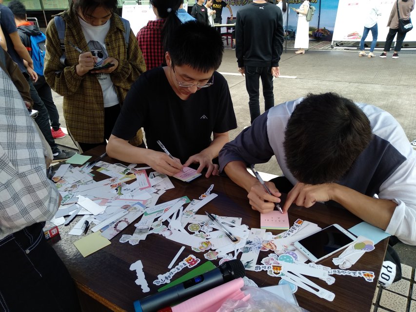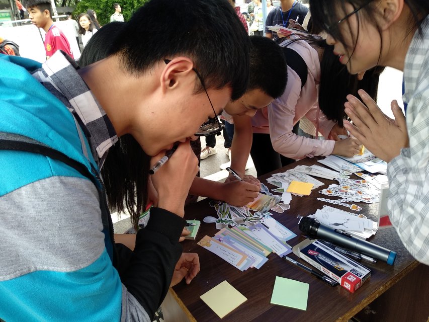 本次活动在中心小广场设立读书名言征集点,由我院学生会学生准备好便利贴、笔、大棚、书签等活动用品,并准备好音响歌单用于渲染气氛,制作好读书名言征集板,让同学们将自己喜欢的读书名言写在便利贴上,然后由工作人员将便利贴粘贴在征集板上,并送出精美礼物书签一张。活动开始,现场气氛浓烈,路过的学生纷纷加入到此次活动之中,写下自己喜欢的名言名句,供大家分享思考。经过一段时间的等候,征集板上已贴满便利贴,活动结束后征集板放在主干道上摆出,供大家相互勉励。