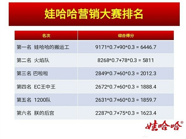 本次娃哈哈创新创业营销大赛坚持理论与实践并重,非常成功地为每位选手搭建了一个展示个人才华、实现营销梦想的舞台,同时也为企业发掘人才、社会培养人才、大学生就业提供了一条新的途径。