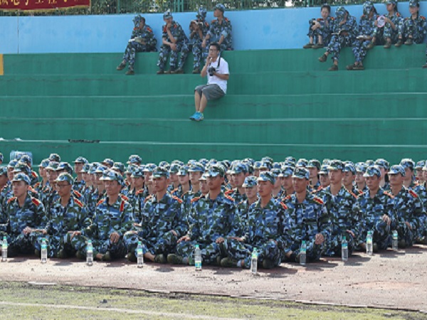 13日上午8点,18级新生们的军训动员大会圆满举行。上午9点为期18天的军训全面拉开序幕。尽管赤日当空,但新生们的热情不减,精神抖擞地参与到了各个项目训练当中。在军训中,高温酷暑给军训工作带来困难,有的学生病倒了,但凭借着顽强的意志,稍有好转便坚持训练;有的学生带病仍在坚持训练。在教官们亲切的关怀和严格训练下,在短短的几天里,齐步走、正步走、齐步变正步、解散、集合及分列式等预定训练科目已初见成效。教官手把手教,学生认真的学,在军训队列训练中,方队整齐,精神饱满,步伐矫健、口令准确、声音嘹亮。