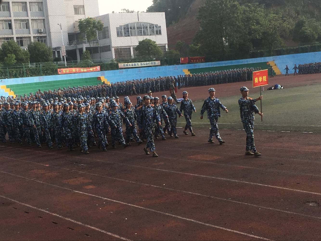 经过了18天紧张而又艰苦的训练,商学院2018级新生迎来了萍乡学院新生军训汇报表演,本次汇报表演是为了检验新生们这18天来的训练成果。本次汇报表演以一个巨大的方阵组成的画卷展开,随后军体拳方阵映入眼帘,由各学院组成的军体拳方阵气势磅礴,每一个动作都铿锵有力,一声声呐喊响声震天。接下来各学院组成的三十个排依次走过主席台,接受学校领导的检阅。阅兵式隆重而盛大,校领导们巡视各方阵,商学院各排分成三个方阵,冒着炎炎烈日,依次迈着划一的步伐依次走过主席台接受检阅;他们精神振作,军容划一,步伐坚定,口号嘹亮,各项动作划一、标准,时时迎来在场所有人热烈的掌声。用他们十八天的致力、刻苦、汗水博得了最后的胜利。最终商学院11排(财务管理专业)荣获汇报表演一等奖,商学院12排(电子商务专业)荣获汇报表演一等奖,商学院13排(市营本,市营国际,酒店管理)荣获汇报表演二等奖。本次汇报表演在掌声和欢呼声中圆满结束。