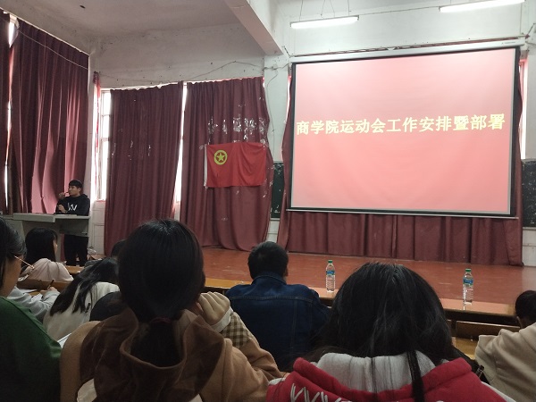 为了运动会的顺利进行,做好后勤保障工作,在2018年10月22号中午11点50分,跬步楼1115教室先后召开了运动会动员大会及运动会工作安排暨部署会议,莅临本次会议的领导及老师有商学院团总支书记朱艳清、商学院学生党支部书记易晶晶以及辅导员赖金文和曾竹老师。