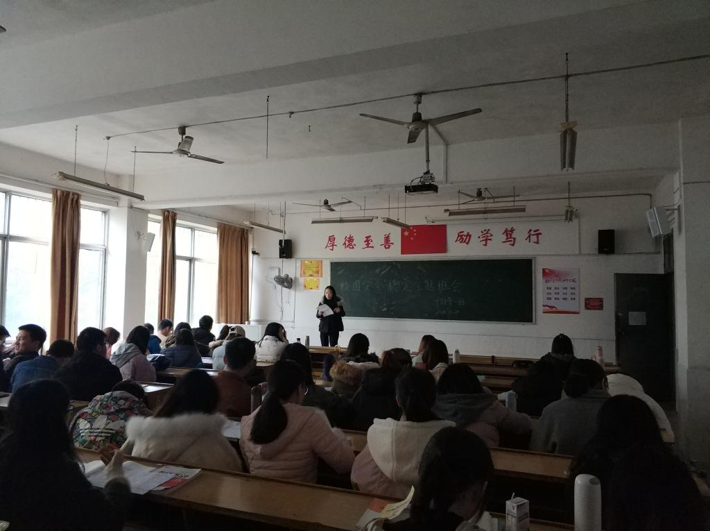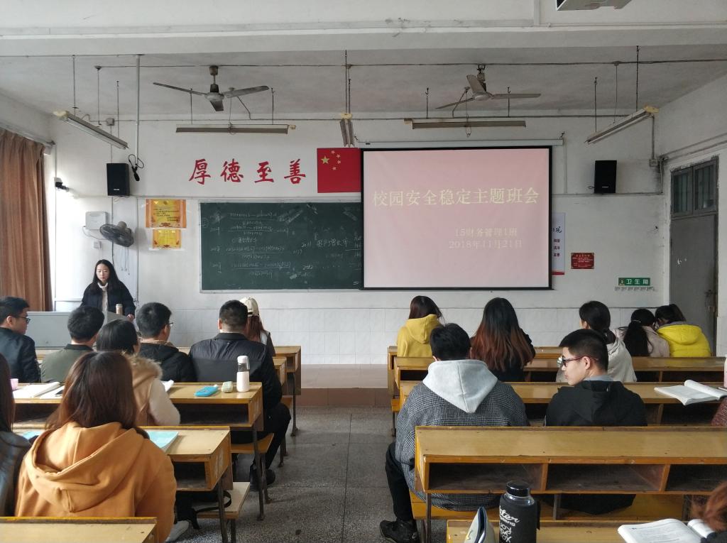 萍乡学院2015级财务管理1班全体同学在班主任曾竹老师的带领下于2018年11月21日在跬步楼1114举行了“校园安全稳定”主题教育班会。