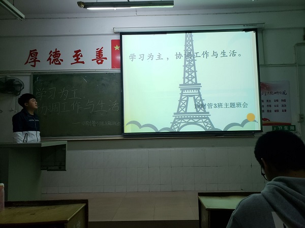 最后由副班长上台发言并总结,对近期同学们高频率因为工作而请学习上的假进行了批评。并发表了自己看法,希望同学们在安排工作的时候,要考虑学习的安排。如,不能在期中复习阶段安排较复杂的活动,在制定学习计划的时候考虑工作的进度,并且能够保证学习计划雷打不动,否则影响学习是不可避免的。在工作和学习之间找到一个平衡点,最后副班长也表明,希望以后同学们能减少因为工作的原因而请学习的假。