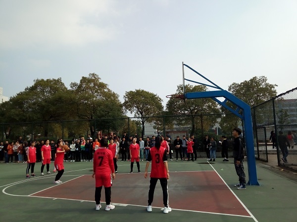 为提高学生的身体综合素质,加强学生之间团结协作的能力,2018年11月22日中午12时,商学院与机械电子工程学院的女子篮球比赛在灯光篮球场举行,商学院学生会部分系干和班级部分成员前来观看此次比赛。