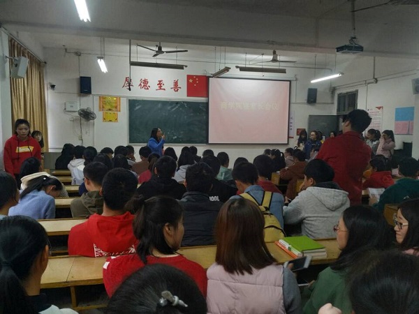 2018年11月26日下午5:00,为确保学生冬季饮食安全,商学院在跬步楼1114教室召开了寝工委员及寝室长会议,商学院学生党支部书记易晶晶老师莅临本次会议并讲话。