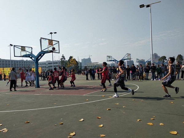 时间锁定在11月30日中午,商学院与工管学院一场激烈的新生杯男篮赛在灯光球场正式开赛,前来观看比赛的有两院系学生会成员及部分班级学生。