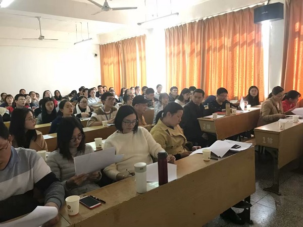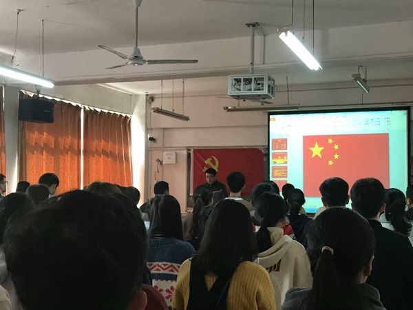 商学院学生党支部于2018年11月28日中午12点在跬步楼1309教室召开了支部党员转正发展大会。本次大会的主要议题是讨论5名预备党员预备期满转为正式党员的事宜。与会人员有商学院学生党支部全体正式党员,预备党员以及转正人员的培养人介绍人老师。本次会议由商学院党总支副书记尹金书记主持。