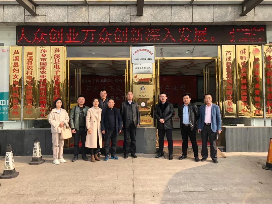 会前,萍乡学院校长史焕平一行参观了园区一楼展示大厅和部分入驻商户,对芦溪县飞天互联网+众创产业园运营模式表示认可和产业园对芦溪经济发展做出的贡献表示肯定。