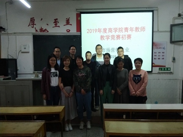 为进一步加强商学院师德建设,提升商学院青年教师的教学能力和业务水平,在2019年5月6日下午两点,跬步楼1211教室,特举办此次2019年度商学院青年教师教学竞赛初赛,参加此次教学竞赛的青年教师都来自于市场营销专业,本次初赛的评委有商学院副院长李自连,商学院副教授雷朝阳,以及商学院黄锦春、陈利兵等两位老师。