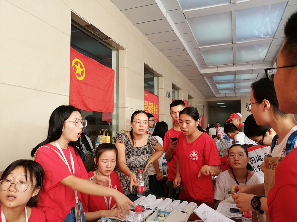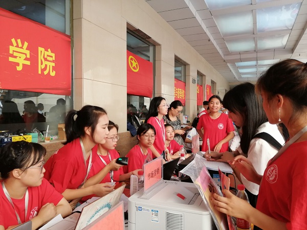 2019年9月7日,商学院迎新工作的第二天,学生会干事们依旧以饱满的激情和实际行动书写对新生的欢迎之情。商学院领导老师在迎新过程中也多次来到迎新现场,关注迎新工作的完成情况,充分体现了对新生的关爱之情。