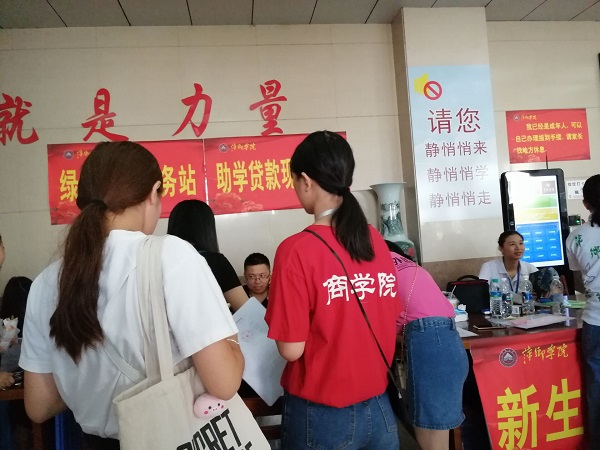 商学院在图书馆设置了迎新服务台,学生会干事们在迎新点主动带领每一个新生及家长办理入学各项手续,为不熟悉校园环境的新生及家长节约了大量的时间,这一点很是值得肯定。干事们还很热心地帮助新生搬运行李,满满的行李箱里装的是对未来的期望。负责登记的学生干部坚守自己的岗位,寸步不离,对每一位新生呈递过来的档案和相关材料都十分谨慎、小心地将它们分类装入档案袋。