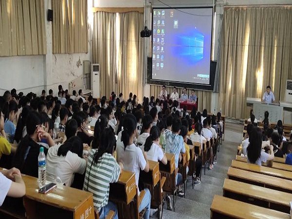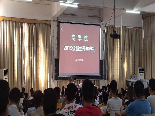 2019年9月9日上午9点,商学院2019级新生开学典礼于跬步楼1101室举行,参加本次会议的有商学院党总支书记韩芳文、商学院院长文正再、商学院党总支副书记尹金、商学院副院长李自连以及2019级全体新生,商学院吴鑫老师主持本次典礼仪式。