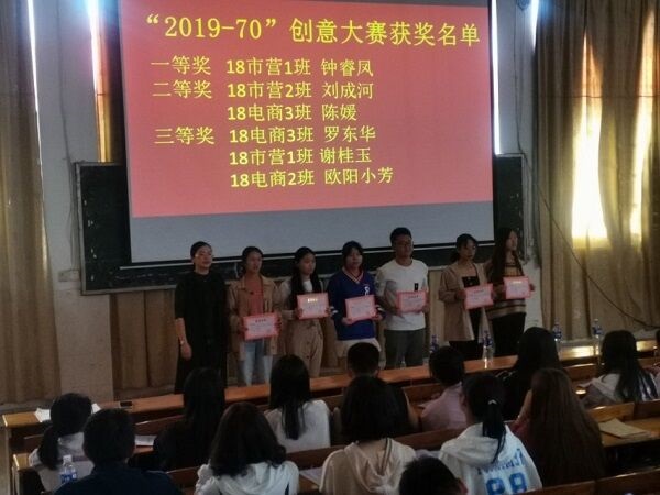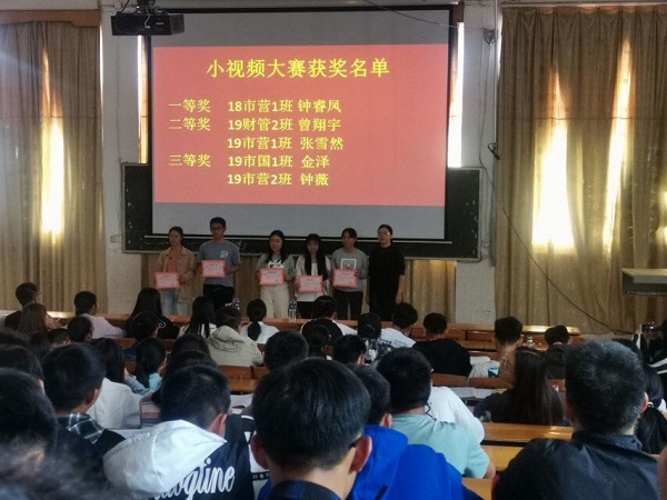 当前,在5G、大数据、人工智能和物联网等“技术革命”的助推下,传播方式正在发生翻天覆地的变化,青年群体正在成为短视频观看和制作的主力。商学院希望通过活动邀请更多同学用当代年轻人独有的方式,用充满创造力的手法捕捉新时代的变化,通过影像表达对祖国的热爱。同学们踊跃参加,用“青春告白祖国”小视频和“2019-70”创意图片庆祝新中国成立70周年。最终分别角逐出一等奖一名、二等奖两名、三等级三名,并由商学院团总支书记朱艳清颁奖。