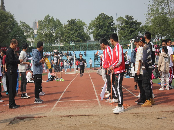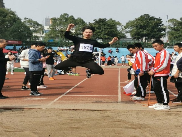 当听到号令的那一刻,跳远健将们纵身一跃,身体腾空,划出一道道完美的曲线,给人视觉享受,纵观赛场,是一个个呐喊助威的面孔。而本次比赛最具看点的是一个虽然没有挺拔的身高、宽阔的跨步但是却赢得了傲人成绩的赛手——他就是谢发全。他虽然没有先天的身体优势,但他凭借着自己的努力,不断提高自己,所以锻炼出一双强健有力的臂膀和惊人的腿部爆发力,在那个平滑的助跑道上迈开稳健的步伐,飞向那胜利的征程,他沉着冷静,即使在落后的情况下,也不急不躁,目视前方,凭借着努力与坚持,最终荣获男子跳远决赛第二名佳绩。