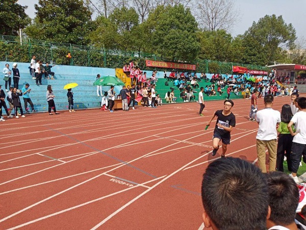枪声一响,一道道身影飞奔而出,你追我赶,每个选手都不甘示弱,都拿出最快的速度向前飞奔,奋起直追努力缩小差距。紧接着第二棒第三棒的运动健儿们也在为最后的胜利而努力奔跑,场上传来个一阵一阵的欢呼加油声,终于,接力棒传到了最后一个运动员的手中,赛场上的气氛越来越高涨,大家都在为运动员们加油打气。商学院运动员们以默契的配合、风一般的速度赢得了乙组第五名的好成绩!
