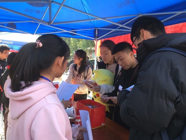 这次活动共有五项环节,分别为小知识问答、找不同、吹乒乓球、蒙眼贴五官、写土味情话,前四项缓解分别会得到绿、紫、黄、蓝相应的印章,闯过由校站负责的最后一关:写土味情话,就会得到校站赠送的彩色印章和彩带,集齐五个不同颜色的印章就可以兑换奖品一份。在此次活动中,各院学生积极参与。
