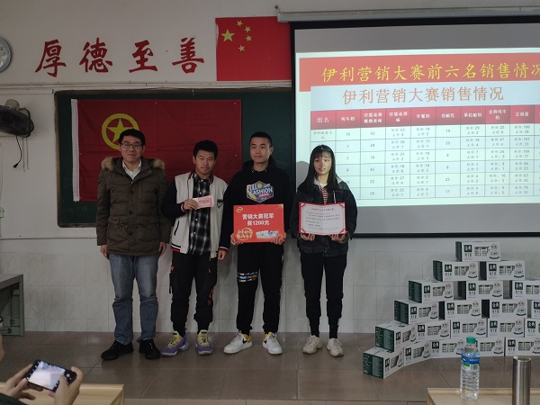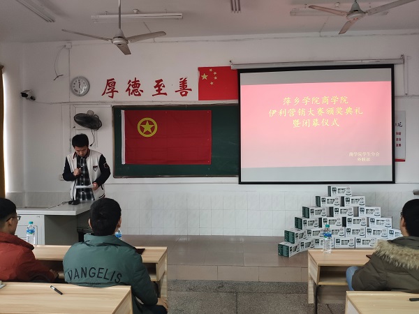 2019年12月30日中午,在跬步楼1306教室进行了12月伊利营销大赛的颁奖仪式。商学院党总支副书记尹金、商学院团总支书记朱艳清,商学院辅导员赖金文、易晶晶、曾竹出席了本次仪式。