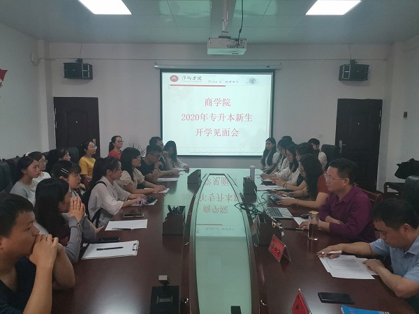 2020年9月8日中午1时,商学院在跬步楼1204教室成功举办了2020级外校专升本新生见面会。出席此次见面会的有商学院院长文正再、商学院副院长李自连、商学院党总支副书记尹金、商学院团总支书记朱艳清、商学院辅导员曾竹以及2020级专升本新生。
