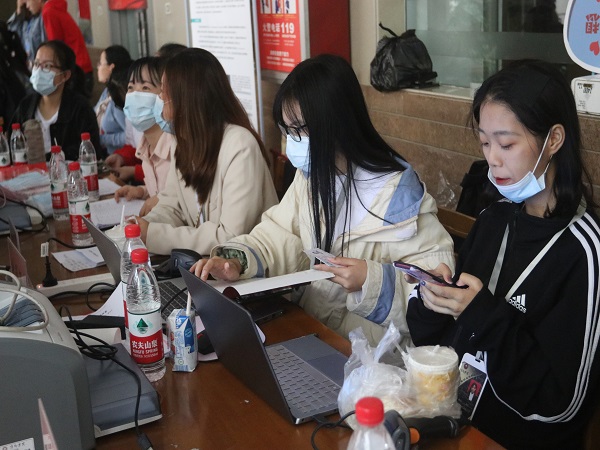 在整个迎新生工作过程中,商学院迎新工作人员热心的帮助,无微不至的关怀以及热情周到的服务,他们站在迎新的第一线,为新生提供优质的服务,不仅让学生舒心,也让家长放心,让新生父母不用担心在远方求学的孩子,让他们知晓自己的孩子在学校也能得到悉心的照顾和关怀。