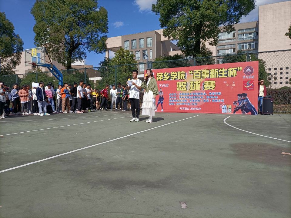 为丰富大学生课余生活,加强体质与各学院之间情谊,百事“新生杯”篮球赛于11月18日12点举行,各学院运动员、裁判员、啦啦队和工作人员参与了此次比赛的开幕式。