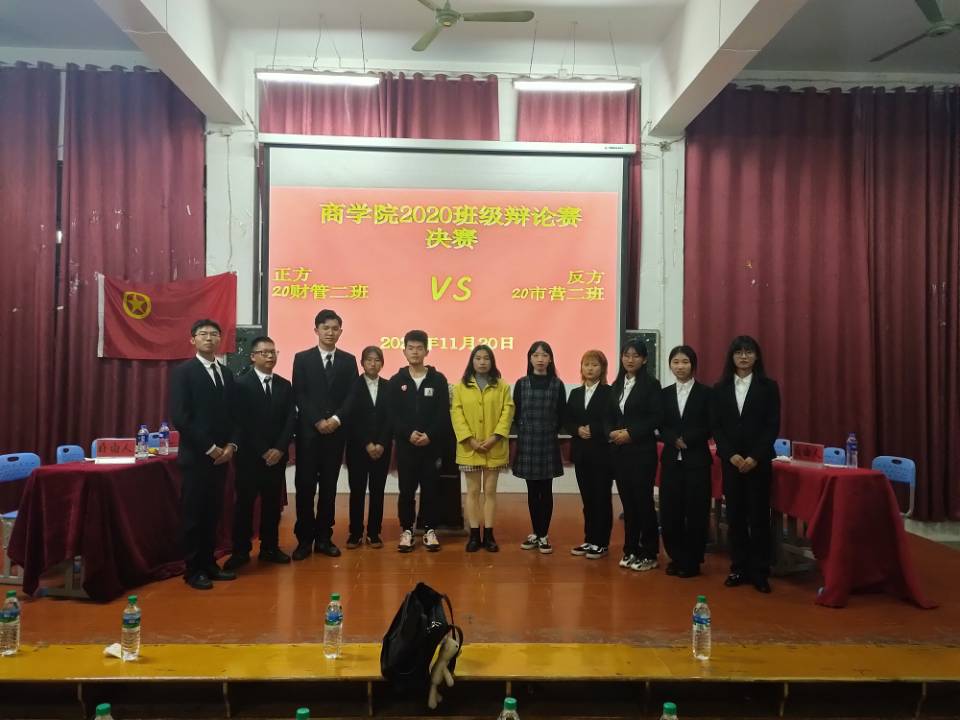 2020年11月20日晚七时,在跬步楼1115室举行了商学院2020级辩论赛决赛。此次辩论赛的辩题是“人生路上对手和好伙伴哪个更重要”,正方财管二班支持的观点是人生路上好伙伴更重要,反方市营二班观点是人生路上对手更重要。