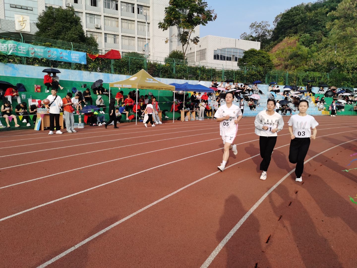 比赛开始前,运动员们在起跑处做热身运动,为决赛做充分的准备。在此次比赛中,商学院学子表现出色:古凯倩获得第六名,陈美芝获得第八名。两位运动员奋勇前行,场外的观众也在为她们加油。随着比赛的进行,两位运动员体力不断消耗,但她们仍然坚持往前奔跑,为商学院争得荣誉。
