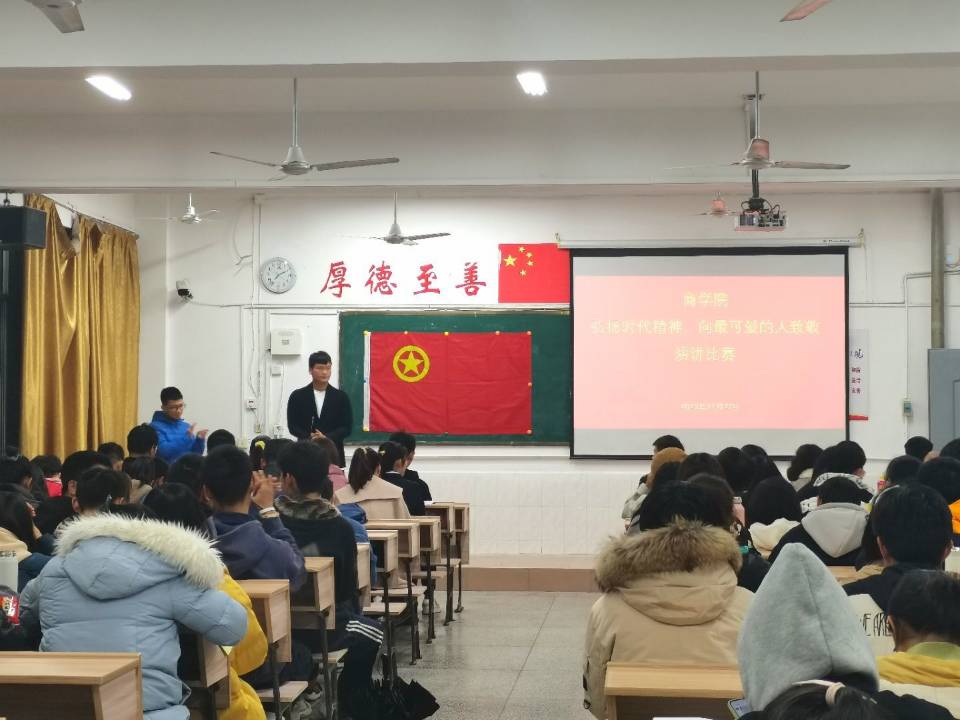 2020年11月27日下午七时,以“弘扬时代精神,向最可爱的人致敬”为主题的演讲比赛准时开始。在主持人的引导下,选手们依次上台演讲,台上选手演讲时而慷慨激昂,时而舒缓动情,引起强烈的共鸣,博得现场观众的掌声。